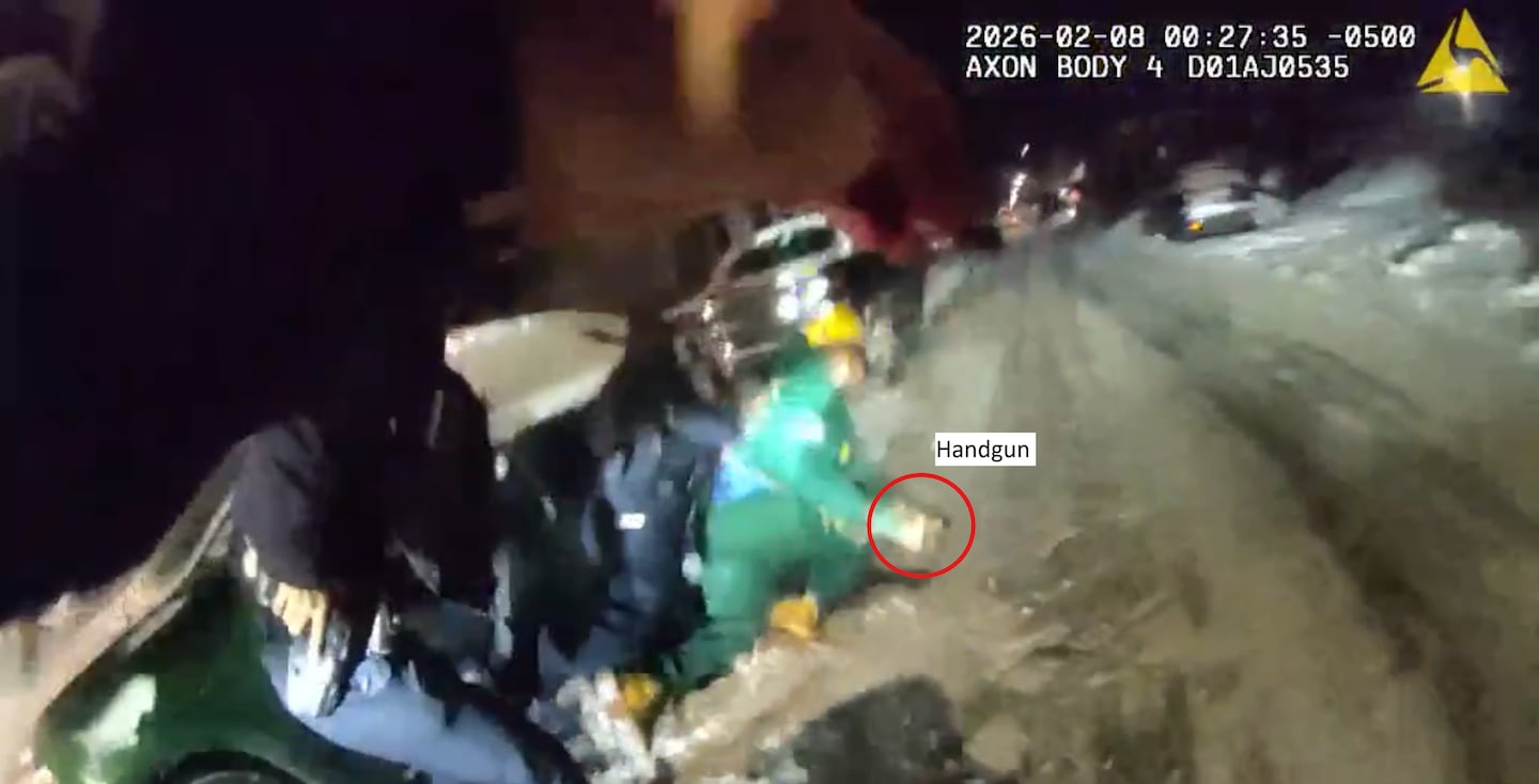 While on the ground, he then began allegedly firing at police, striking one officer in the elbow and a second officer in the abdomen striking his bullet resistant vest.