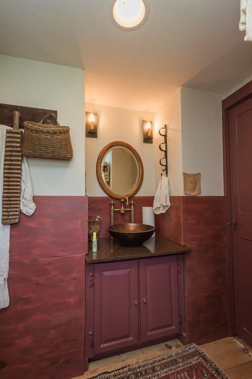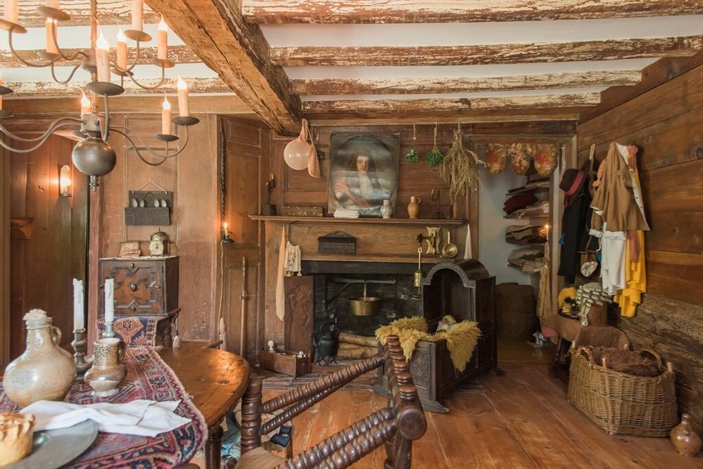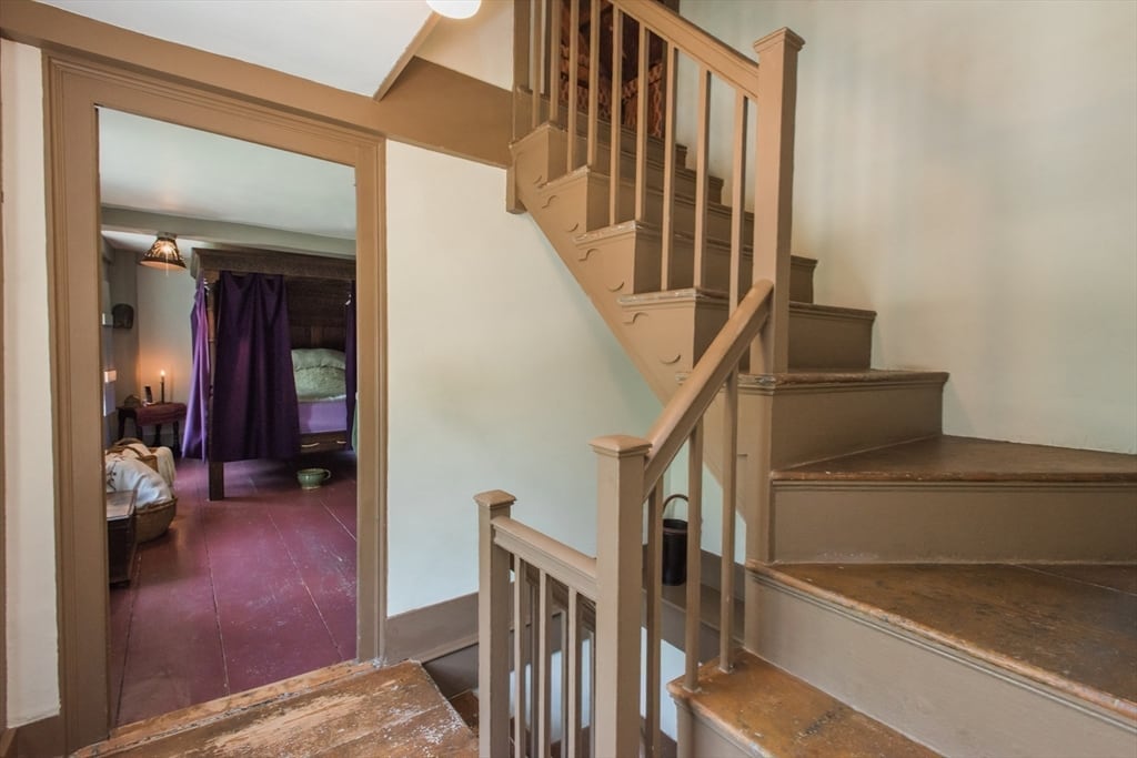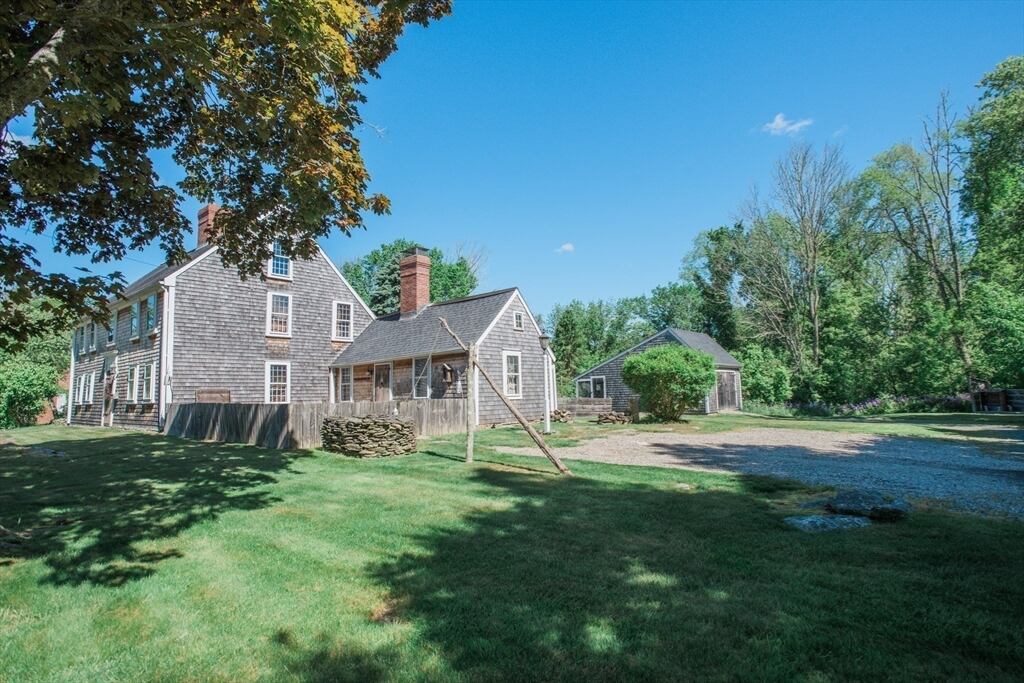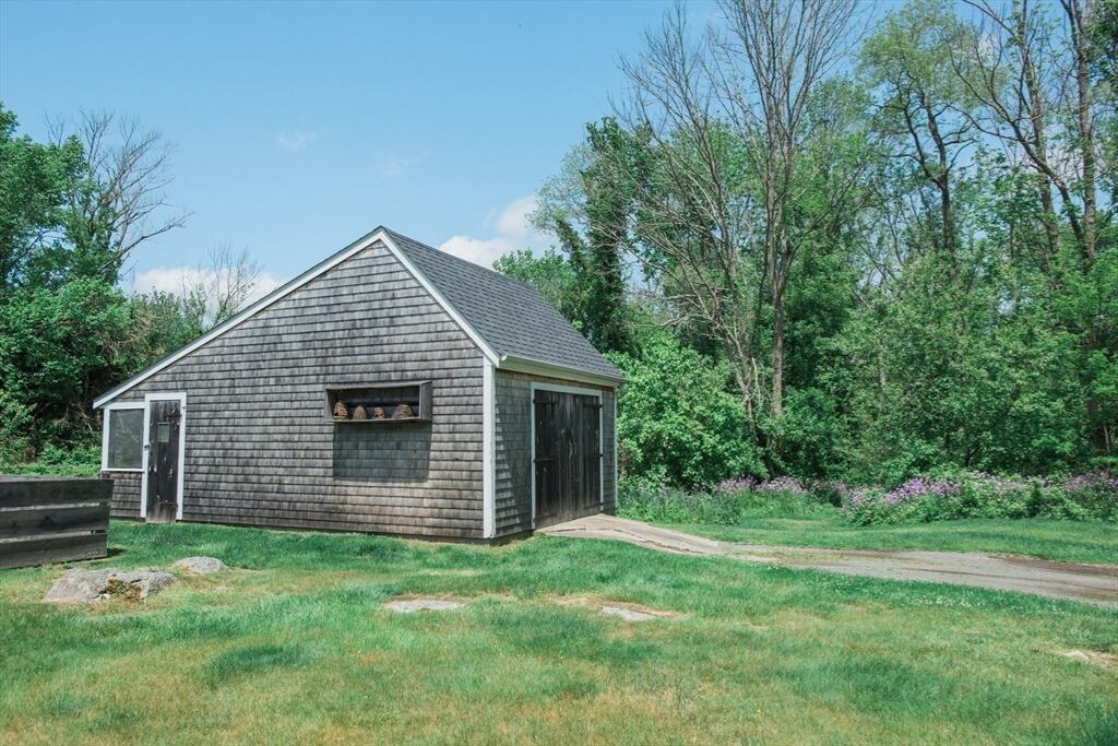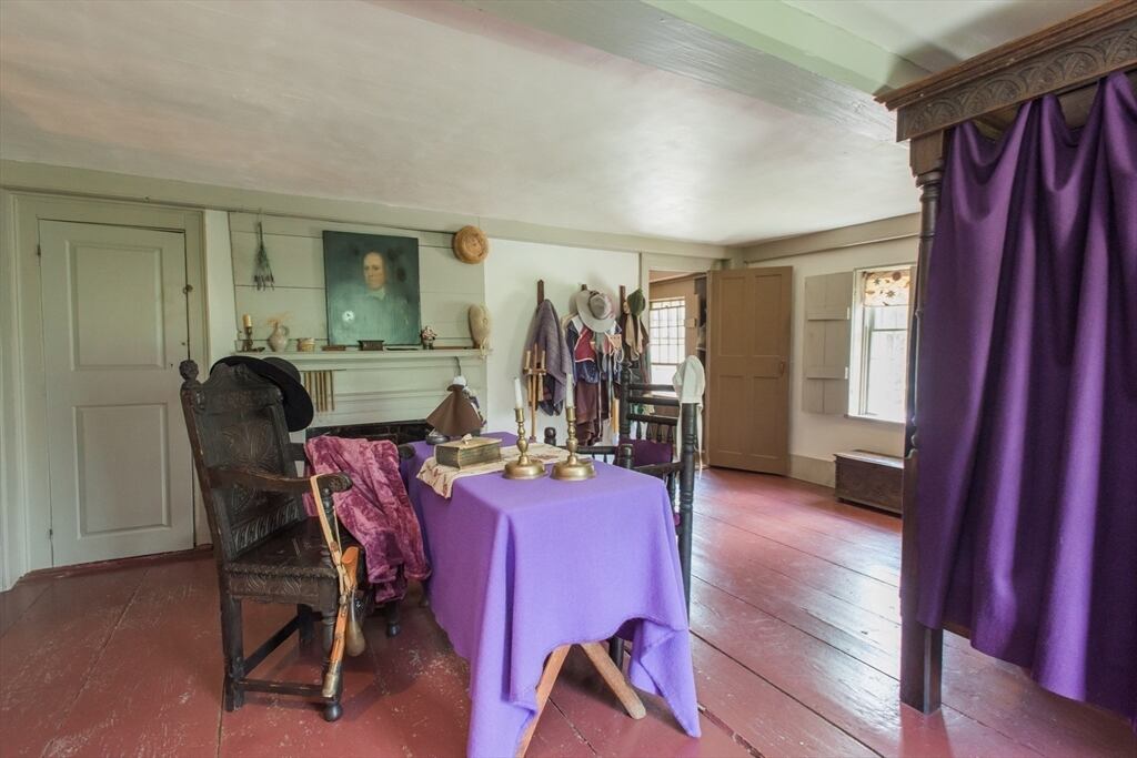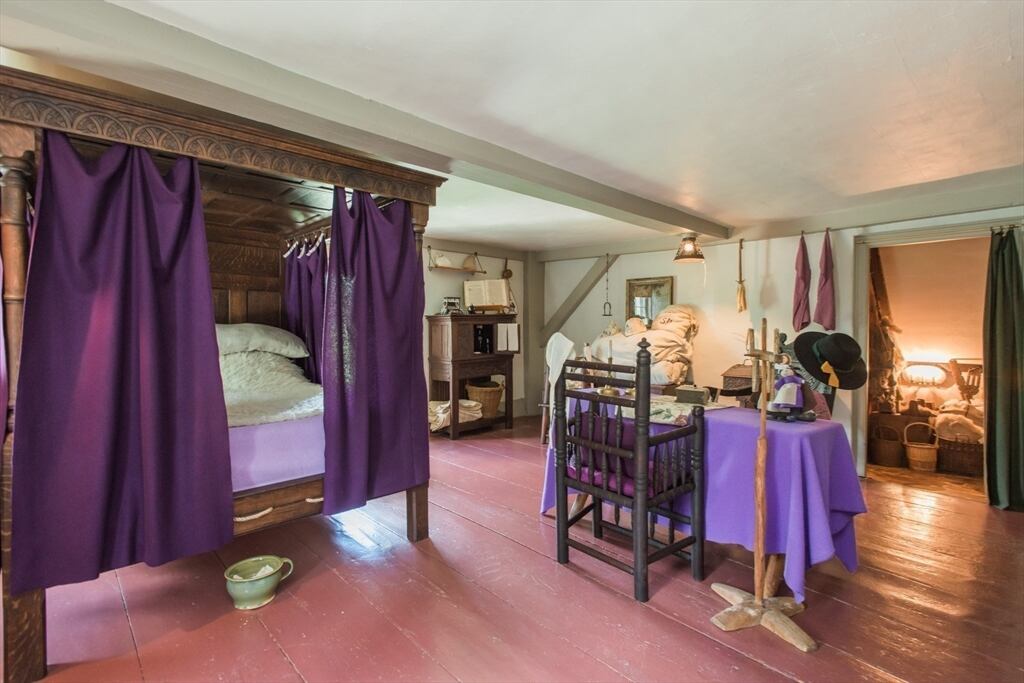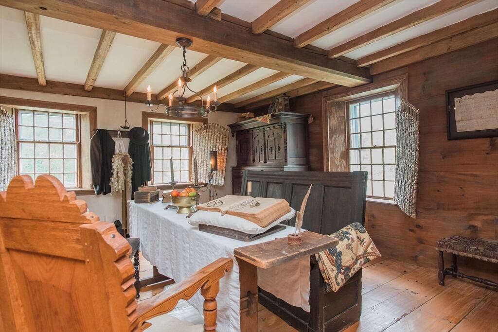 “Step back in time to enjoy the workable fireplaces, new but period leaded glass windows, wide pine floors, antique and custom replica windows, exposed hand-hewn beams, vaulted custom kitchen, custom wainscotting, and more,” the listing reads. “This is a rare, first-period timber framed home that includes many historic features as well as modern amenities such as three workable fireplaces, a brand new oil tank, updated electrical, forced hot air heat, a newer full house generator, and first-floor laundry room.”