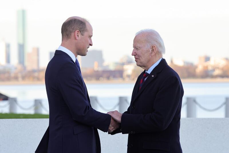 Boston visit BOSTON, MASSACHUSETTS - DECEMBER 02: Prince William, Prince of Wales meets with US President Joe Biden at the John F. Kennedy Presidential Library and Museum on December 02, 2022 in Boston, Massachusetts. The Prince and Princess of Wales are visiting the coastal city of Boston to attend the second annual Earthshot Prize Awards Ceremony, an event which celebrates those whose work is helping to repair the planet. During their trip, which will last for three days, the royal couple will learn about the environmental challenges Boston faces as well as meeting those who are combating the effects of climate change in the area. (Photo by Chris Jackson/Getty Images) (Chris Jackson/Getty Images)