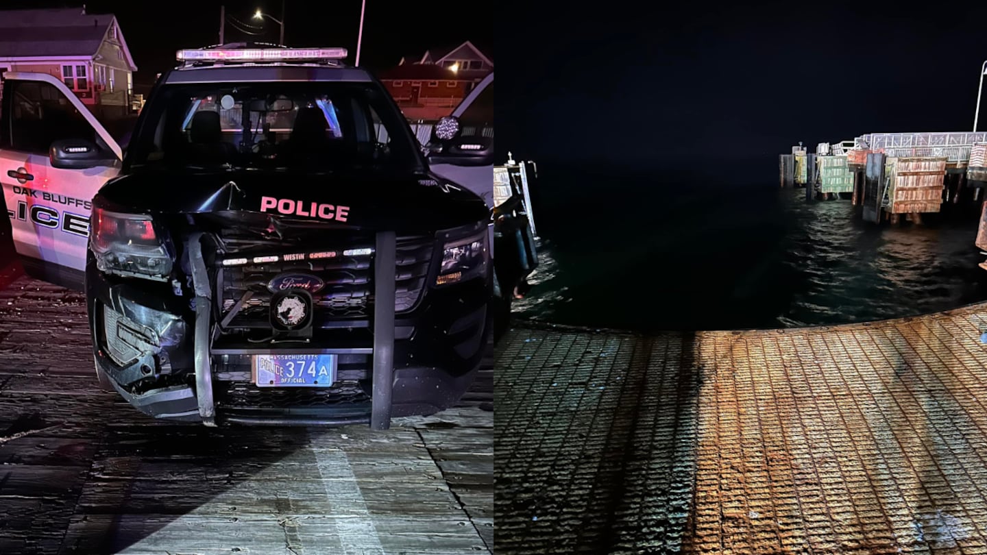 The truck then sped off and the sergeant couldn’t keep up with the driver because of the damage to his cruiser, according to Curelli. The sergeant later spotted the driver turn onto the gated ramp of the Steamship Authority Dock at the corner of Seaview and Oak Bluffs avenues, where the truck launched off of a ferry ramp into the water.