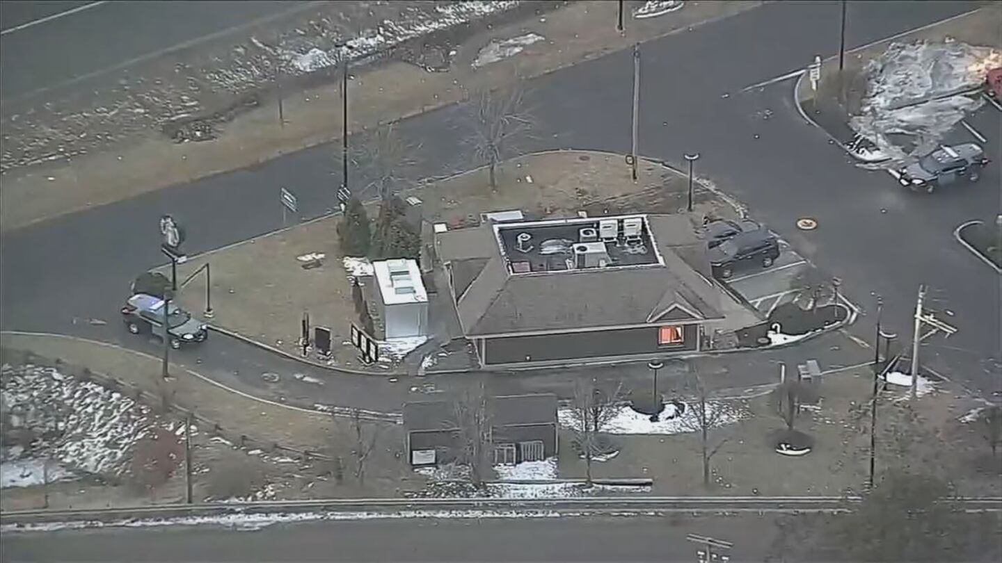 Detectives were seen photographing cash scattered near the drive-through and later collecting bills that were scattered on the grass.