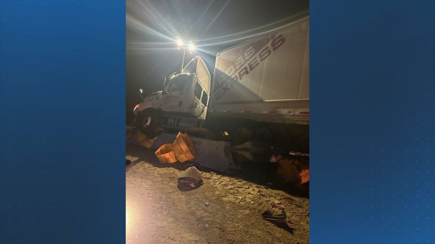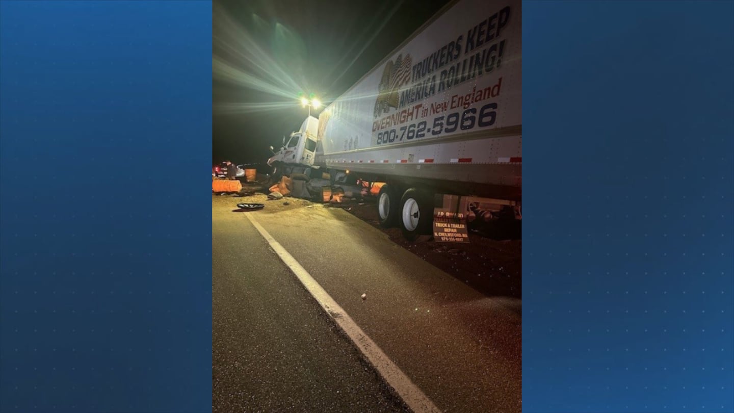 Police say Kenneth Irizarry, 43, of Providence, Rhode Island, was driving a Ross Express tractor-trailer when he fell asleep. Police say he drifted into the right breakdown lane, hitting sand barrels before driving over temporary jersey barriers where the truck became stuck.