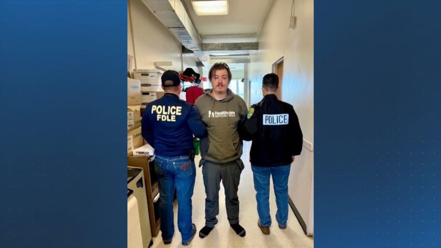 Justin Adkins, 29, of Rhode Island, was arrested on a warrant in West Warwick, Rhode Island on Feb. 3, Florida Attorney General James Uthmeier said in a statement. He is being held without bond and will be extradited to Florida.