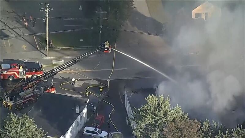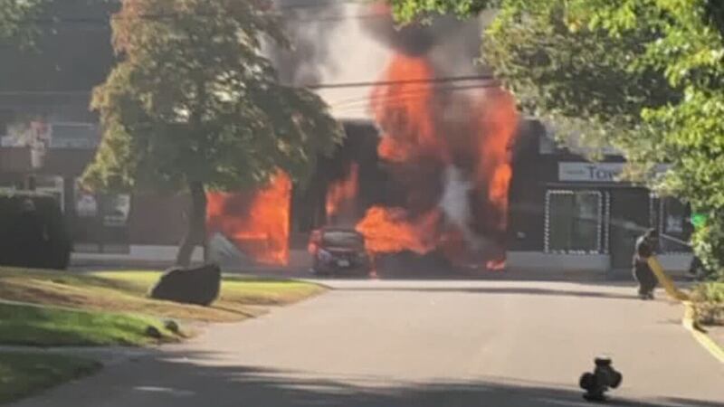 ”Really, really bad flames were coming out through both doors, then it started coming out through the roof,” said Oliver Ahearne, who lives close to the auto body shop. “There were really loud bangs, a lot of explosions. A car was parked out front and eventually caught fire, then from there it was getting out of control completely.”