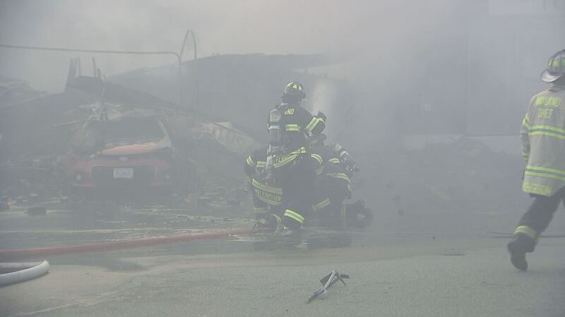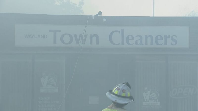 Wayland Fire Chief Neil MacPherson said all the people working inside the auto body shop at the time got out safely, but two firefighters suffered minor injuries while fighting the fire, including one who tripped over a hose.
