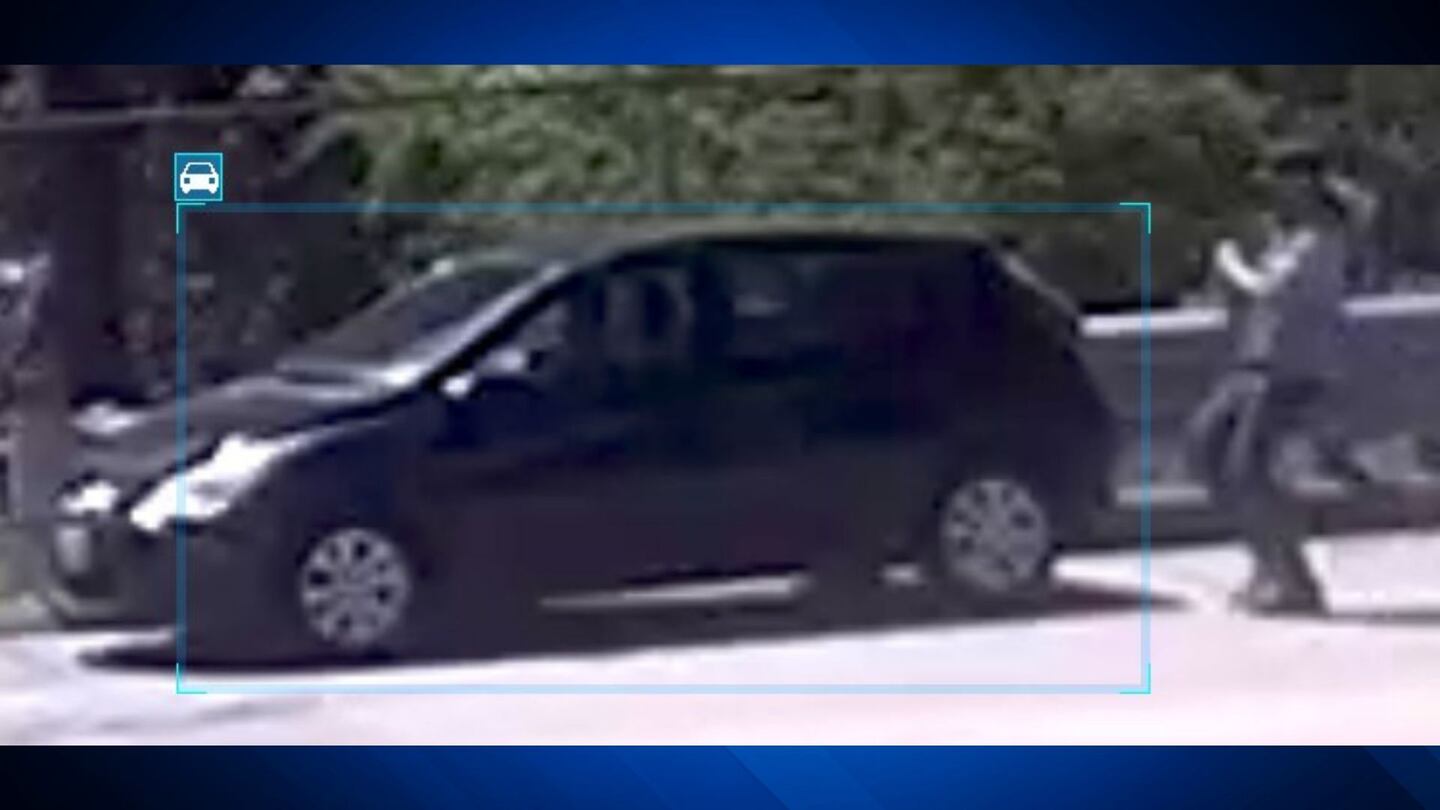 The vandalism occurred around 2:00 p.m. and the suspect appears to be a man with a pony tail wearing a denim jacket. The jacket is believed to have a black patch on it and the man is seen driving a black hatchback.