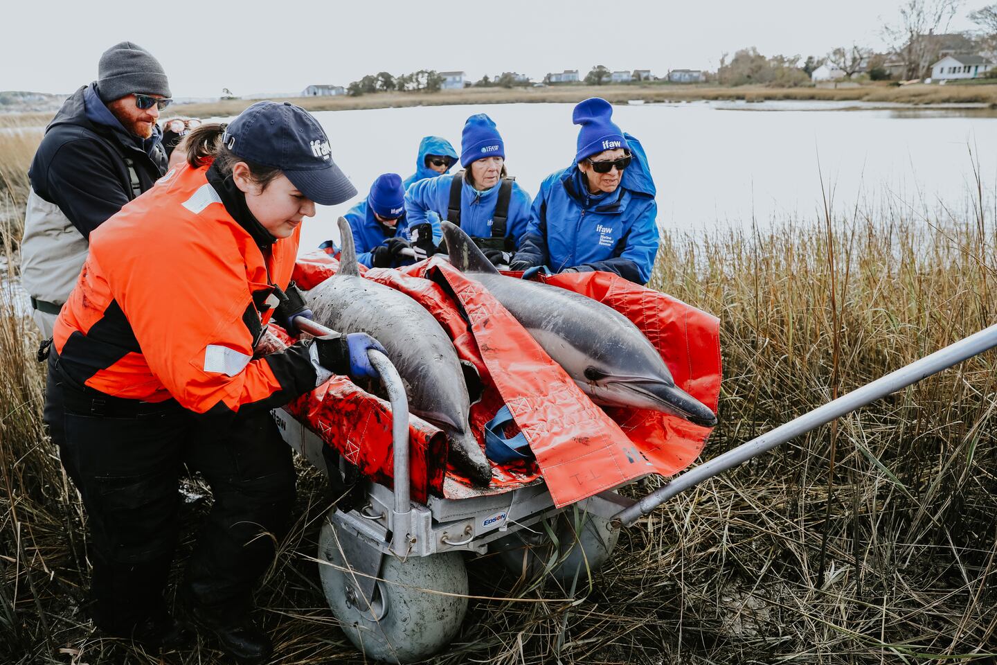 The IFAW deployed custom-built mobile dolphin rescue units to transport the porpoises.