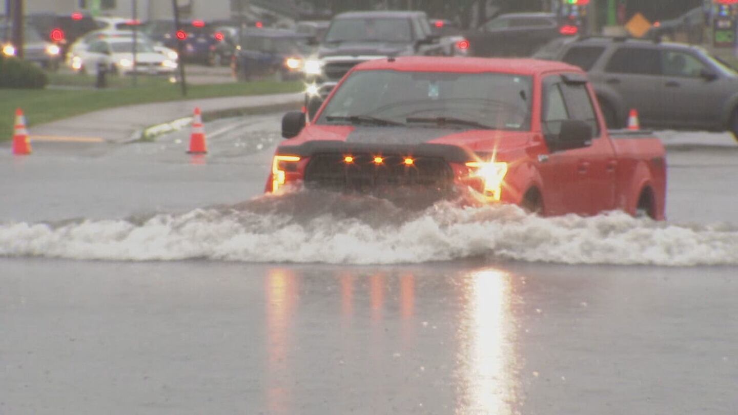Brockton suffered severe flooding, forcing drivers to push aside gallons of water to get down Westgate Drive near the Westgate Mall.