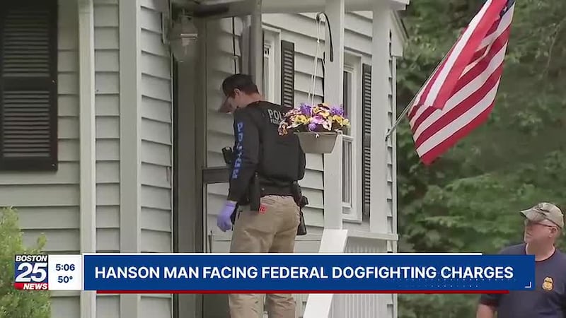 HANSON, Mass. — A Hanson man has been arrested on federal dogfighting charges amid a multi-state investigation, accused of having several injured dogs at his home to use them for dogfighting and using Facebook to communicate with dogfighters in other states.
