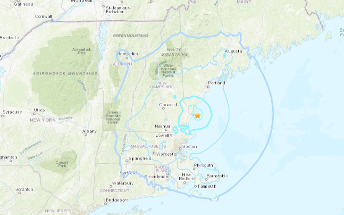 A USGS “shakemap” indicates the earthquake was felt as far south as Cape Cod and the Islands and as far north as New Hampshire’s White Mountains region.