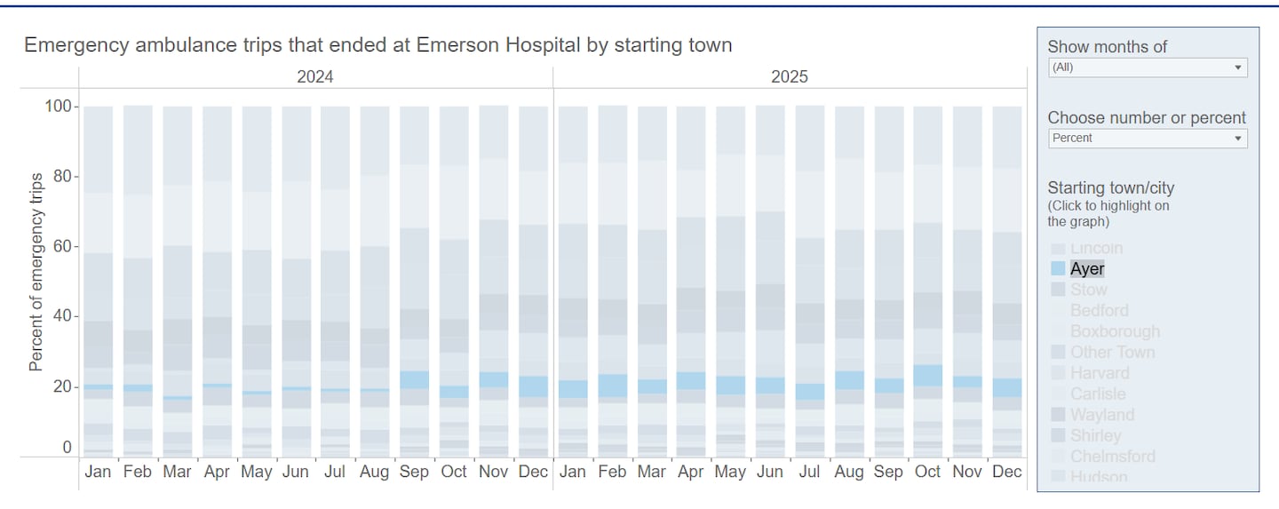 August 2025 – 5.4% of emergency ambulance trips went from Ayer to Emerson ER