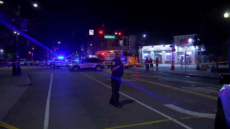 Video showed a large crime scene roped off with yellow tape near Citywide Convenience as investigators worked to gather evidence.