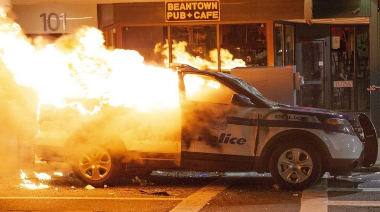 Chopper footage captures shocking image of an apparent Boston Police cruiser burning in the midst of a protest on Boston Common that has turned violent. #boston #boston25 #bostonprotests pic.twitter.com/4PCboNIlSU