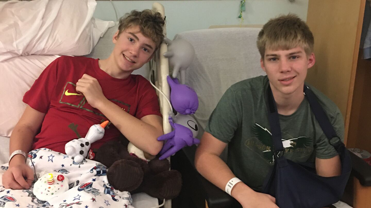Family says Colin’s injuries are primarily from the waist up and Evan’s are from the neck up. Both boys are suffering from short-term memory loss and other brain injuries.