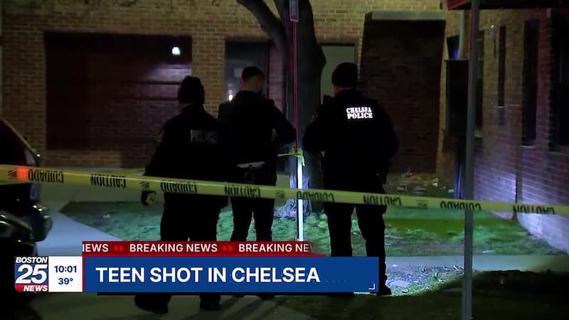 CHELSEA, Mass — Police are searching for a shooting suspect in Chelsea after a 17-year-old was rushed to the hospital Friday night.