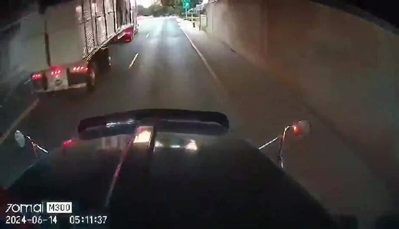 A dashcam video from a fellow truck driver showed the tractor-trailer under the bridge before it went up in flames.