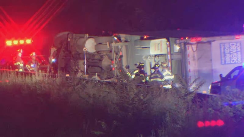 Video from the scene showed traffic backed up for miles and multiple emergency vehicles parked around the tractor-trailer.