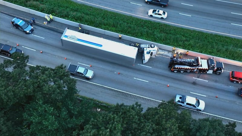 Crews responding to a report of a crash on the northbound side of the highway near North Ave. just before 5 a.m. found a Penske truck resting on its side, blocking the center and left travel lanes.