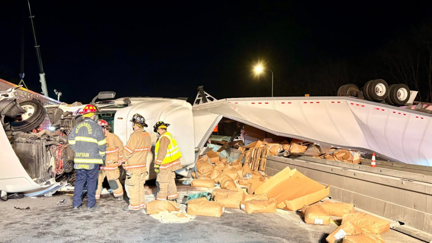 The tractor-trailer crashed and ended up on its side near mile marker 106 in Westborough.