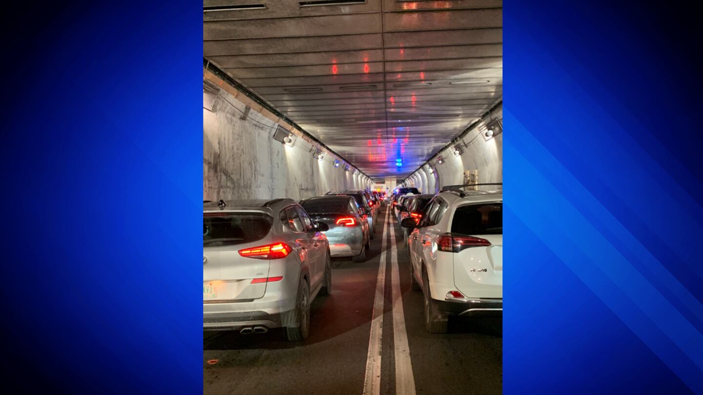 A viewer sent us this photo showing the major backup in the tunnel after multiple cars were stopped due to the truck being stuck.