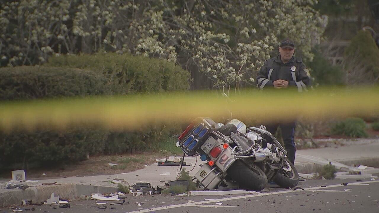 Dedham Police responded to the area of 308 Bridge Street around 12:30 p.m. for a report of an accident involving a motorcycle. A Transit Police motorcycle was performing a funeral escort when a car suddenly turned and struck the officer, according to officials.
