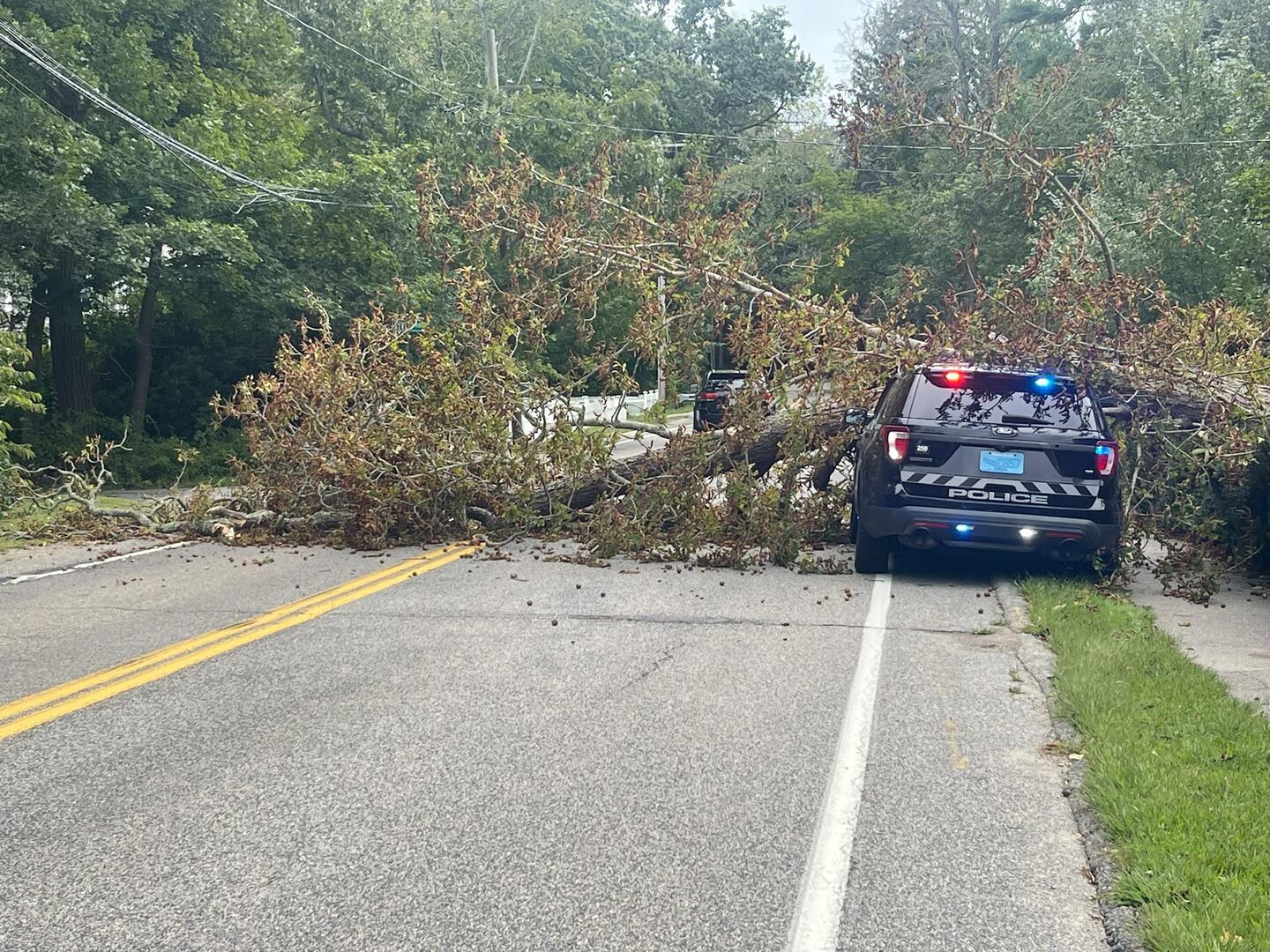 The tree fell as the region was experiencing high wind gusts during Tropical Storm Lee.