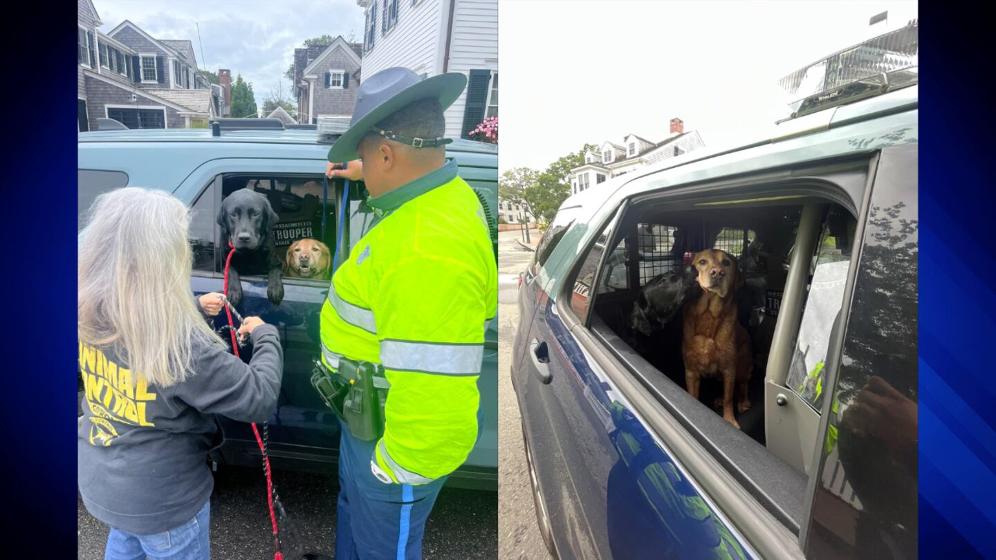 Massachusetts State Police say the pair were found roaming Edgartown and troopers could not find their owners.