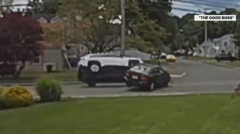 In the video seen on Victor Oliveira’s doorbell camera, a white Toyota SUV and a black Toyota Corolla collide. The SUV, which had been approaching from behind, goes up on only its two driver’s side wheels on top of the Corolla before the SUV crashes through a neighbor’s fence at Salem St., and Chapman Rd., leaving a mess of debris in their backyard.
