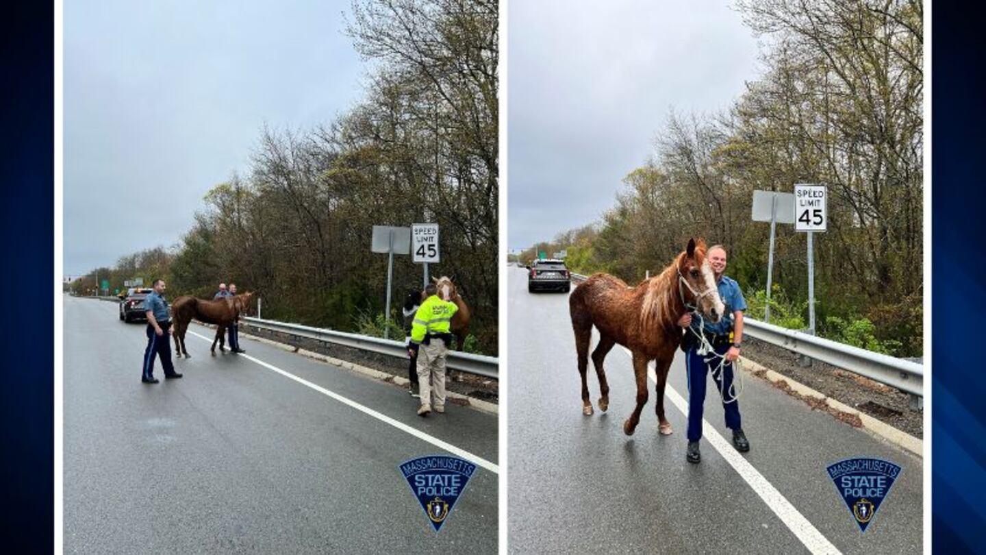 The horses got loose from their stable at a private residence before 8 a.m. and began trotting out onto Route 88 in Westport, according to Massachusetts State Police.