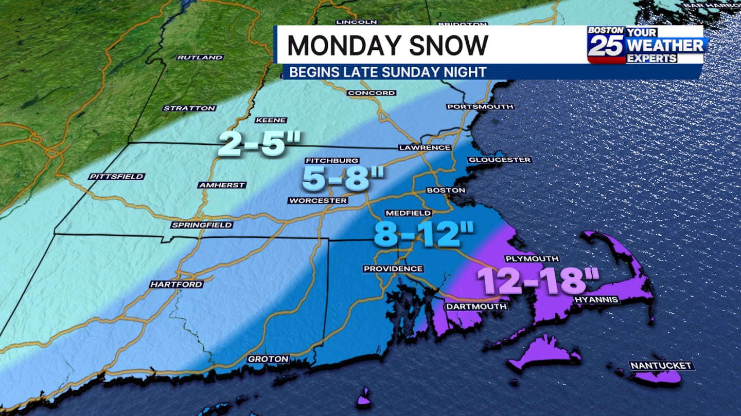 Cape Cod, the Islands, and parts of southeastern Massachusetts could see 12 to 18 inches of snow.