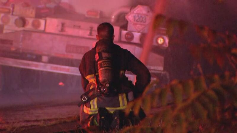 A fire started in both the car and the tanker, and according to Boston Fire Chief Mark Raymond, the truck driver immediately turned a valve, which released the pressure in the tank.