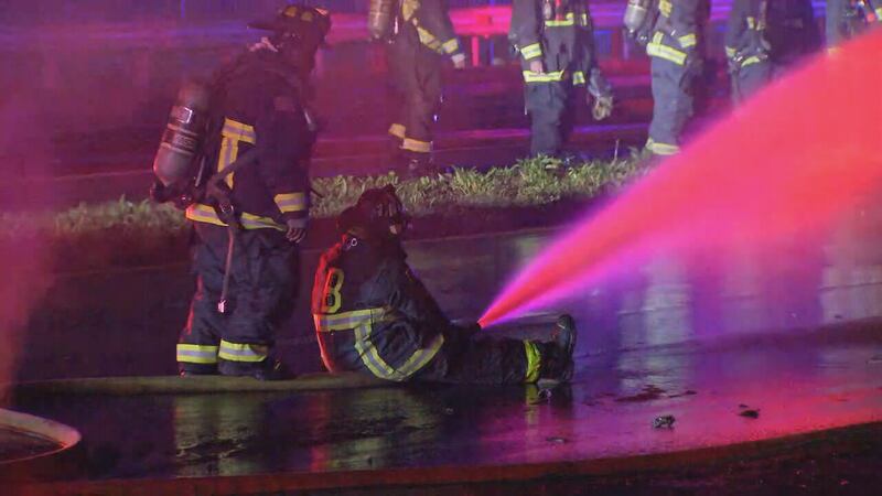 BOSTON — A woman was rushed to the hospital with burn injuries following a fiery crash involving a fuel tanker on a highway in Boston early Wednesday morning, officials said.