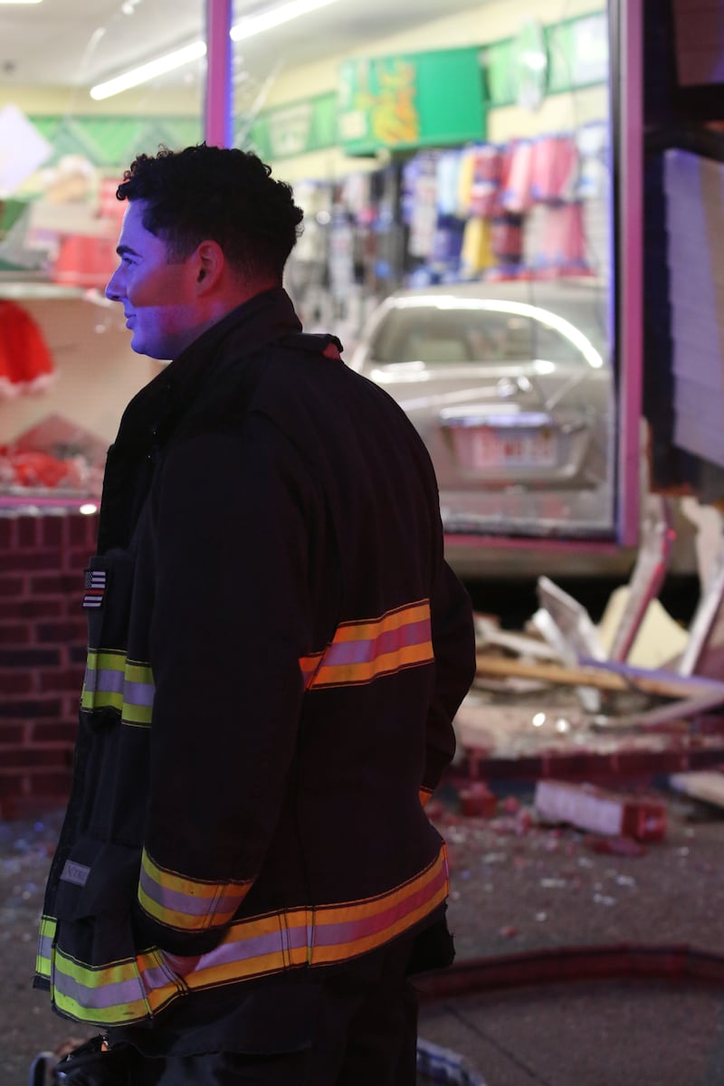 Debris was scattered all over the sidewalk and into the parking lot. Broken glass, bricks, and other items covered the ground. Crews working to repair the front side of the store arrived after 8 p.m. Friday.