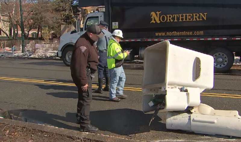 Video captured by a Boston 25 photographer showed the truck resting on its side, with its boom and basket blocking the roadway.