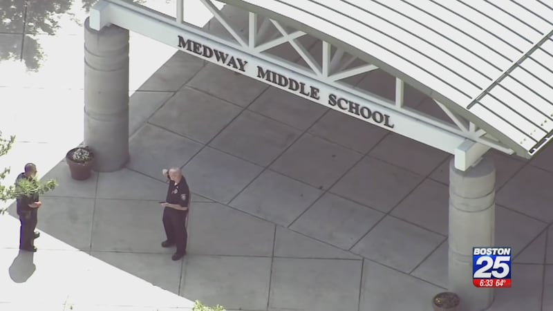 MEDWAY, Mass. — A custodial worker at the Medway Middle School was pinned under a locker after if fell on top of her on Monday afternoon.