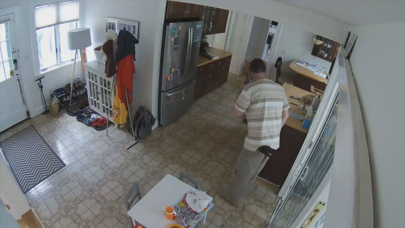 In a video released by the Milton Police Department, the man can be seen breaking into the home through a back door two weeks ago.