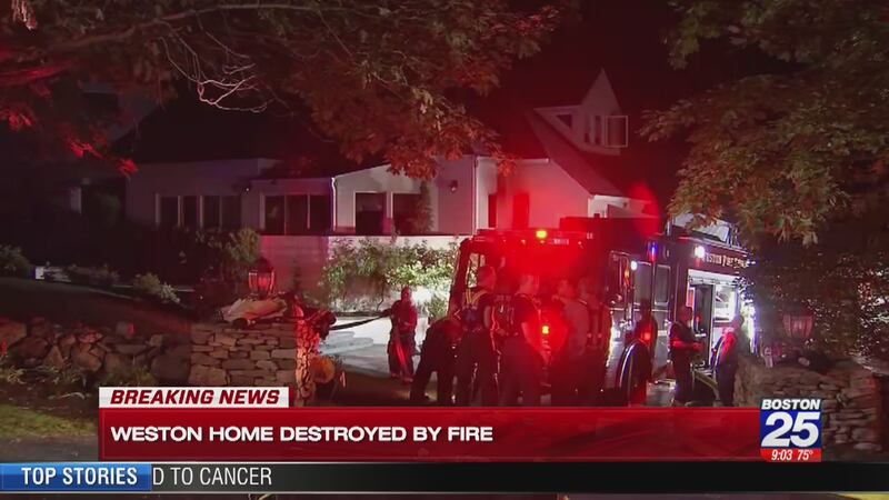 Two people inside this home on Glen Rd in Weston were woken up by smoke detectors going off. They were able to get out safely but the @WESTON_FIRE chief says the home is a total loss. #Boston25 pic.twitter.com/5JE1uTEPDr