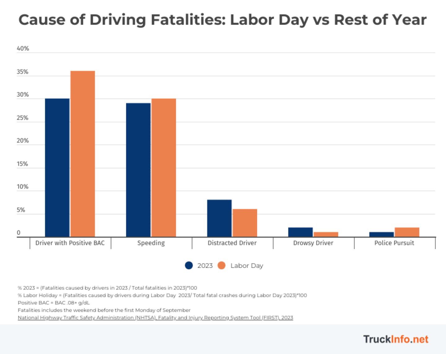 Using data from the National Highway Traffic Safety Administration, researchers at TruckInfo.net discovered a few worrying trends for Labor Day drivers.