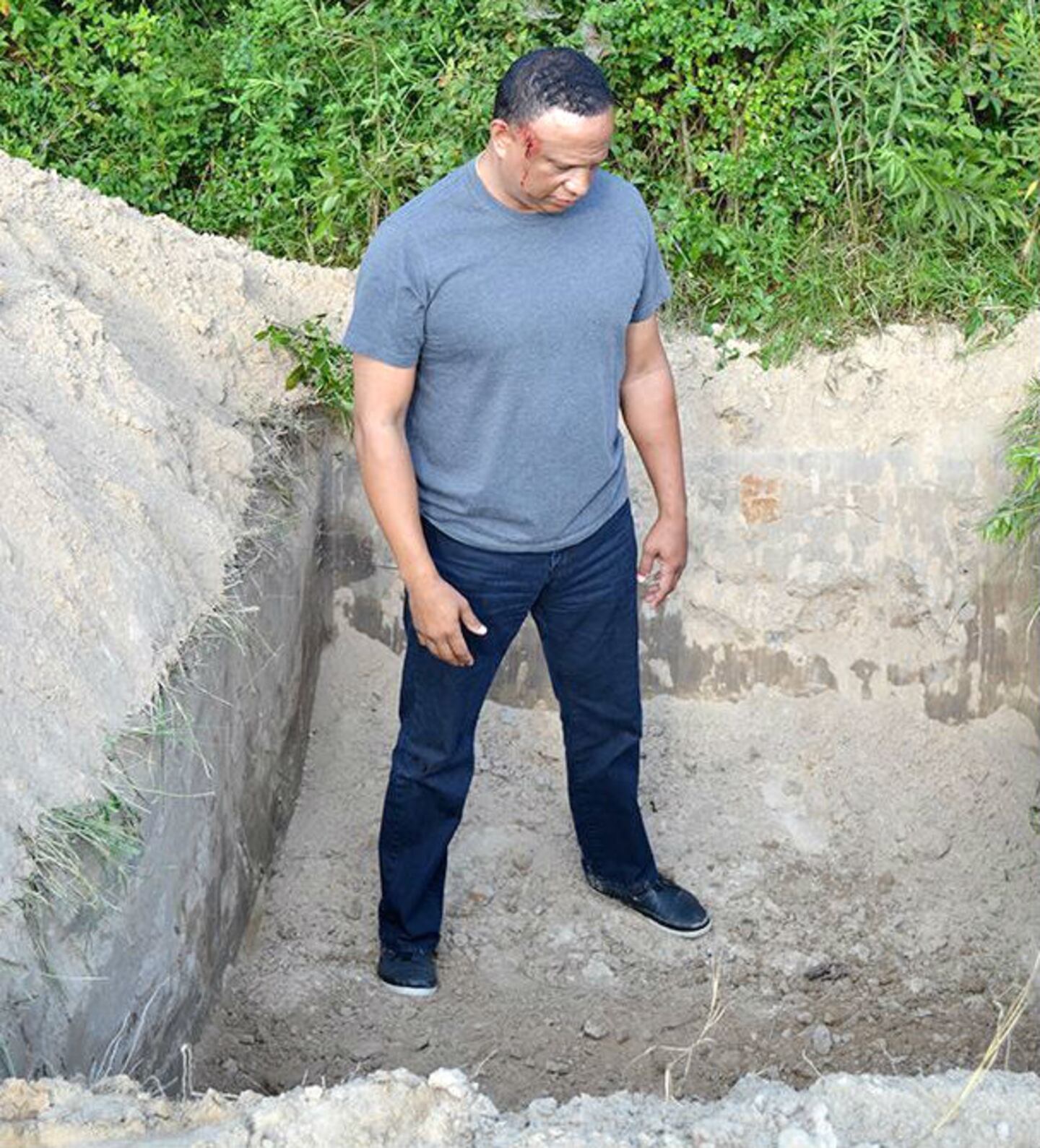 Ramon Sosa is pictured standing in the fake grave police dug for him in 2015. His ex-wife, Maria "Lulu" Sosa, 45, of Spring, Texas, is serving up to 20 years in prison for trying to hire a hit man to kill her husband during an acrimonious divorce.