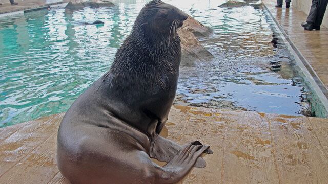 The 11-year-old seal came from the Seattle Aquarium. He is one of nine northern fur seals living in aquariums in the US, and five of them are in Boston. Commander is enjoying settling in to the aquarium's fur seal colony.