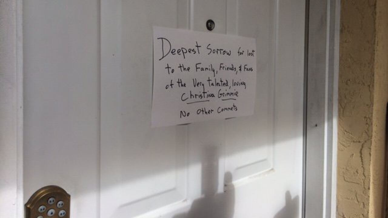 The note, written in what appears to be black permanent marker on plain white paper, read, “Deepest sorrow for lost (sic). To the family, friends and fans of the very talented, loving Christina Grimmie. No other comments.”