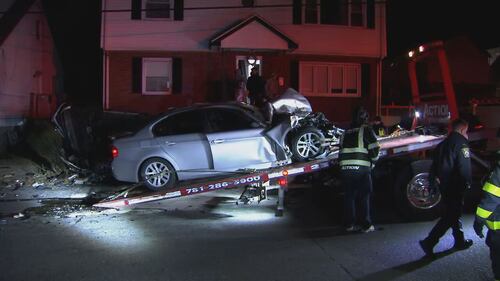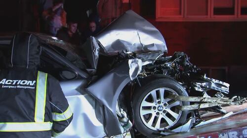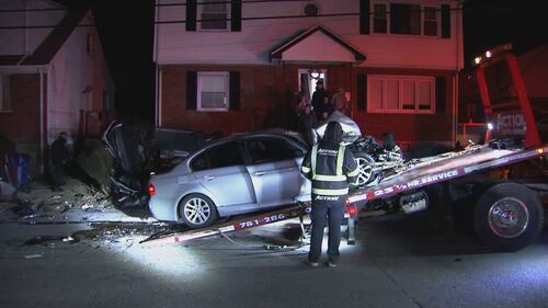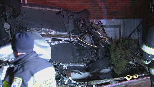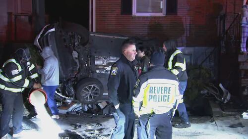 Photos: 3 taken to hospital after car smashes into several parked cars in Revere