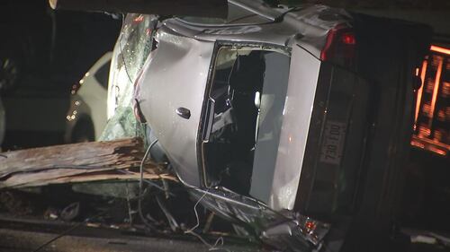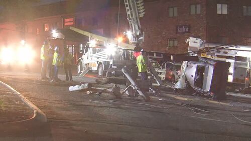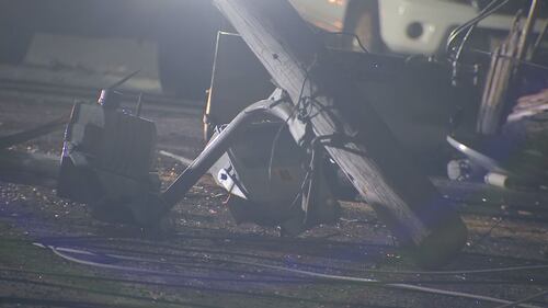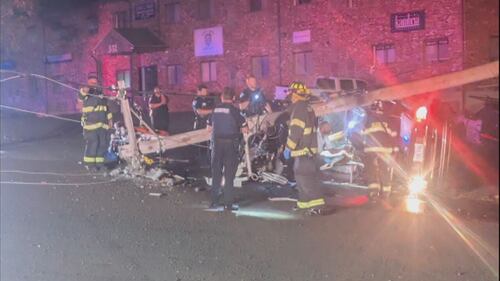 Photos: Billerica crash leaves mangled car wrapped in power lines