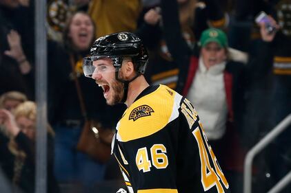 Montreal Canadiens v Boston Bruins BOSTON, MA - MARCH 23: David Krejci #46 of the Boston Bruins celebrates after he scored against the Montreal Canadiens at the TD Garden on March 23, 2023 in Boston, Massachusetts. The Bruins won 4-2. (Photo by Rich Gagnon/Getty Images) (Rich Gagnon/Getty Images)