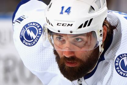 Tampa Bay Lightning v New York Islanders ELMONT, NEW YORK - APRIL 06: Pat Maroon #14 of the Tampa Bay Lightning skates against the New York Islanders at the UBS Arena on April 06, 2023 in Elmont, New York. (Photo by Bruce Bennett/Getty Images) (Bruce Bennett/Getty Images)