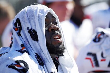 Cincinnati v Central Florida ORLANDO, FL - NOVEMBER 12: Korey Cunningham #71 of the Cincinnati Bearcats reacts on the sideline against the Central Florida Knights in the second half of the game at Bright House Networks Stadium on November 12, 2016 in Orlando, Florida. Central Florida defeated Cincinnati 24-3. (Photo by Joe Robbins/Getty Images) (Joe Robbins/Getty Images)