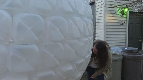 Photos: Massachusetts mom builds giant snowman made out of more than 700 milk jugs