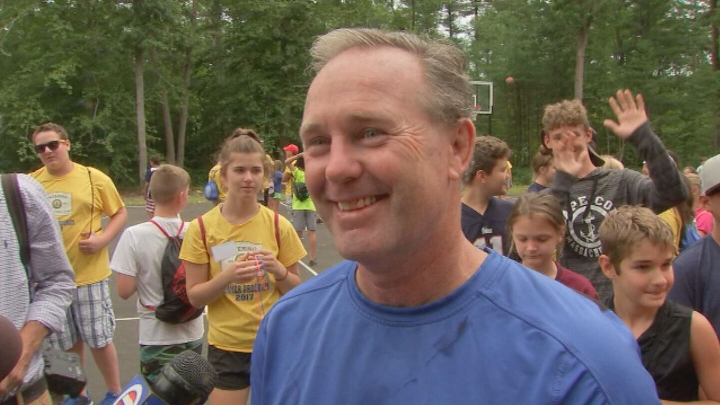 Kids and counselors with the Plymouth County Drug and Alcohol Resistance Education Summer Program at Whitman-Hanson Regional High School watched, cheering him on.