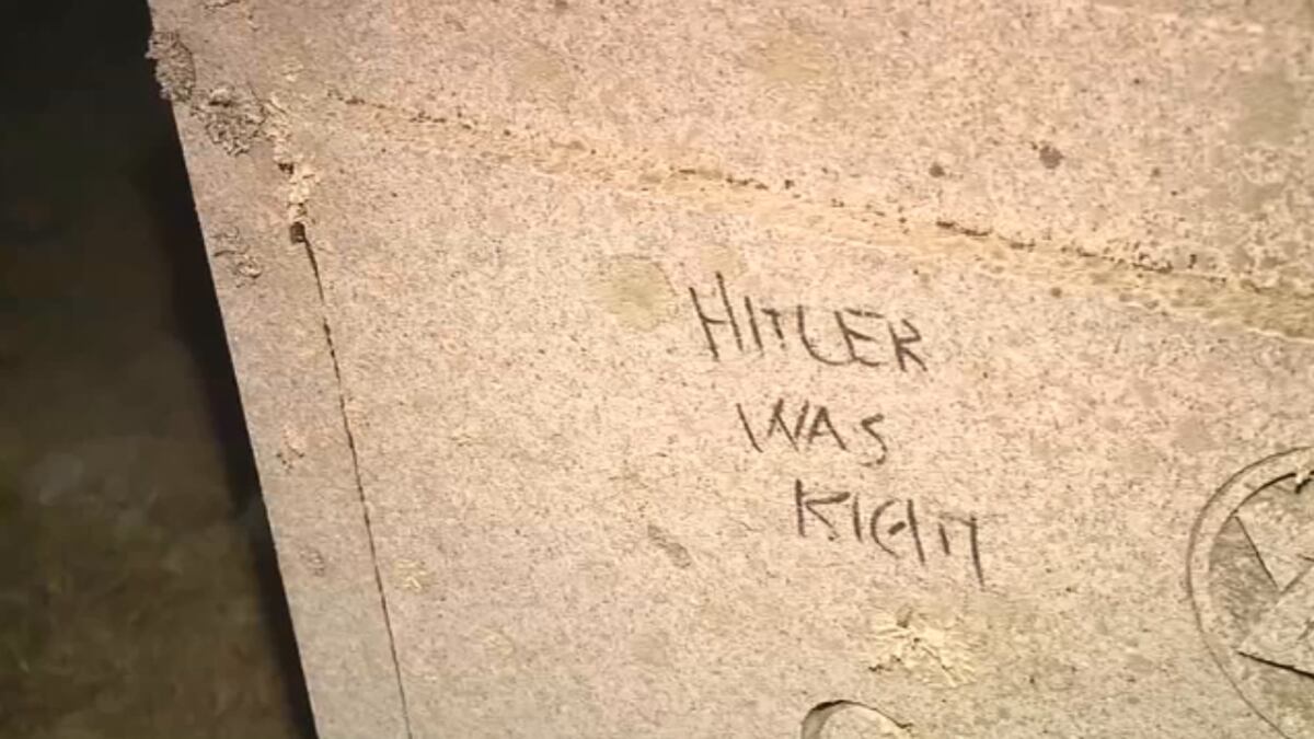 The stones were defaced with swastikas and phrases including "Expel the Jew" and "Hitler was right" in what appeared to be black marker.