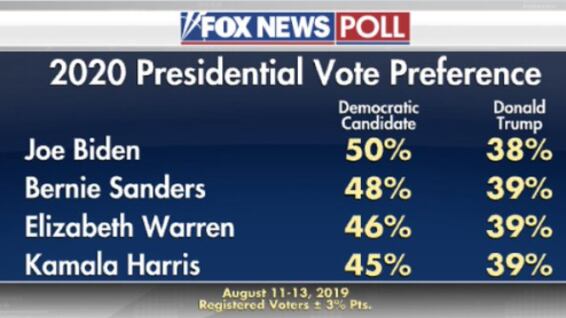 Asked about the most recent poll from Fox News - which showed him trailing the top tier of 2020 candidates for President - Mr. Trump was succinct.